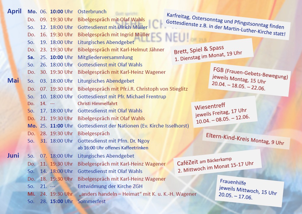 Daneben engagieren wir uns in besonderen Abendgottesdiensten und anderen Veranstaltungen der LKG Gütersloh.